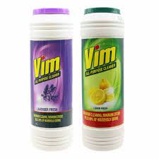 Scouring powder, Vim cleaner, tough stain remover, kitchen cleaner, bathroom cleaner, multipurpose cleaning powder, surface cleaner, grease remover, tile cleaner, stainless steel cleaning powder.